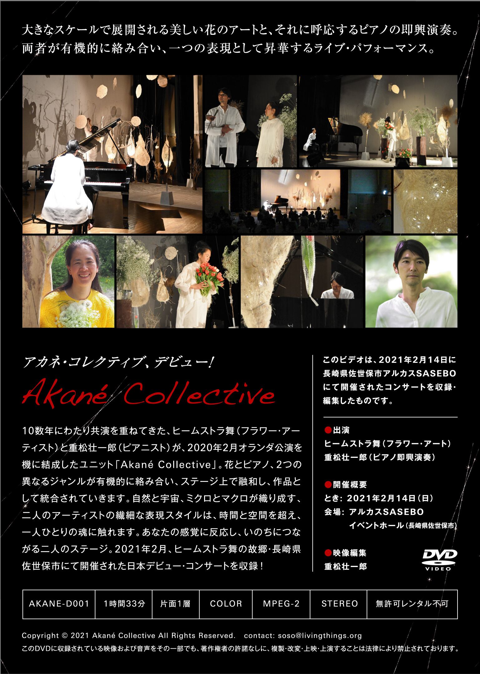2021年2月14日アルカスSASEBO(長崎県佐世保市)にて開催された「Akané Collective - 花とピアノのコンサート」の1時間半の舞台公演をすべて収めた全編動画DVD。